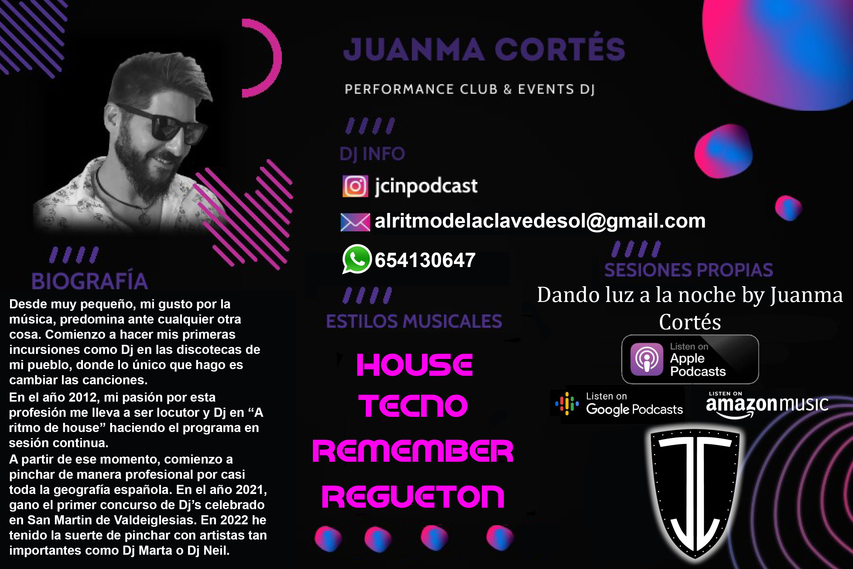 Tengo más de 10 años de experiencia como Dj profesional. Domino todos los géneros musicales, pero tengo preferencia por la electrónica.