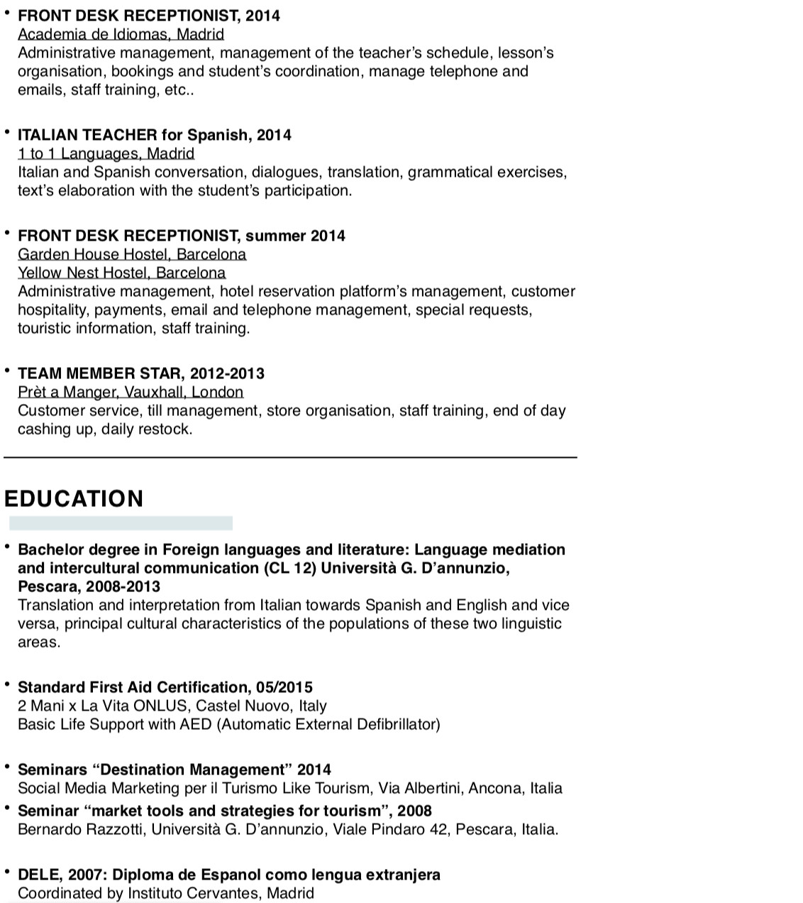 Enthusiastic, professional girl with strong skill in interpersonal and customers service. Originally begun in the world of translation and hospitality, now specialised in offering personalised advices on luxury services for niche customers and handling their complaints.