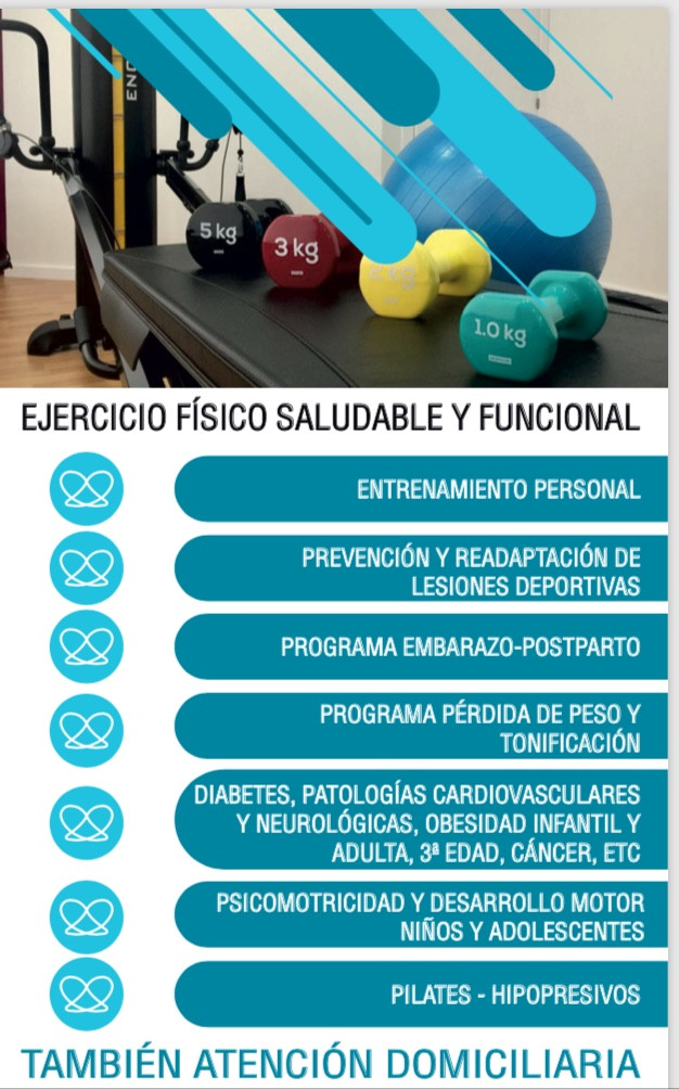 Soy un profesional de la salud que, mediante un estudio individualizado evalúa y prescribe el ejercicio físico conveniente. De acuerdo al estado de la salud, capacidades, necesidades o incluso metas del cliente desarrollo un plan de motivación y educación deportiva con la que mejorar su calidad de vida y salud.