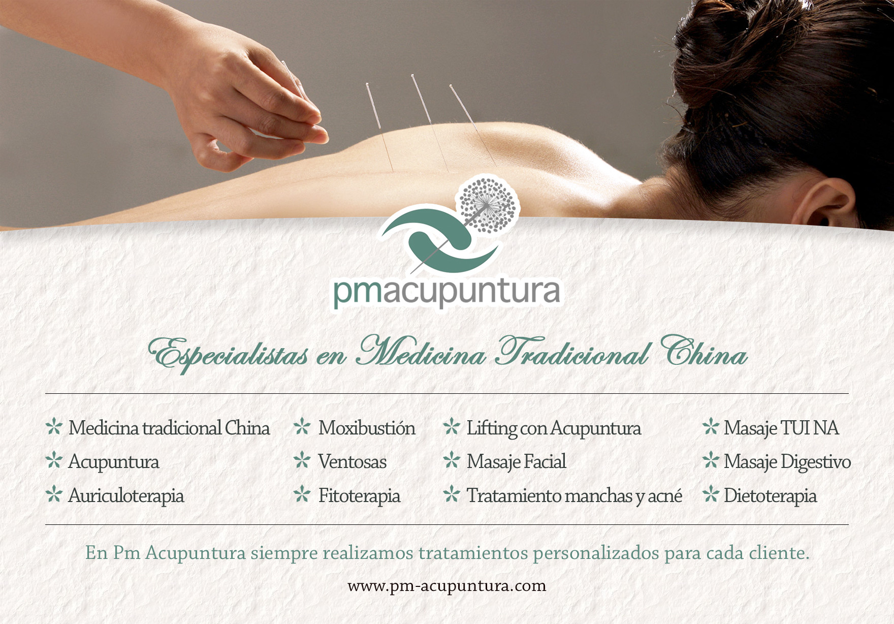 Especialista en Medicina Tradicional China, Acupuntura, auriculoterapia, dieto terapia, ventosas, moxibustión, masaje digestivo (elimina bloqueos emocionales), Medicina integrativa (trabajamos en conjunto con tratamientos convencionales como complementarios), siempre buscando lo mejor para cada persona, si deseas más información, contacte sin compromiso