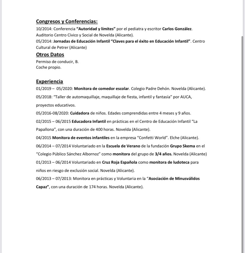 Soy una chica responsable, educada y cariñosa. Trabajo con un proyecto educativo. Tengo experiencia en el cuidado de niños como educadora y monitora en escuelas infantiles, ludotecas, escuelas de verano y comedores escolares.